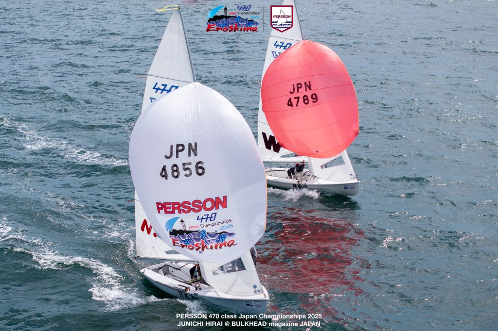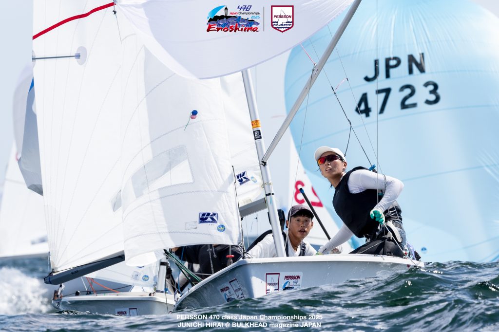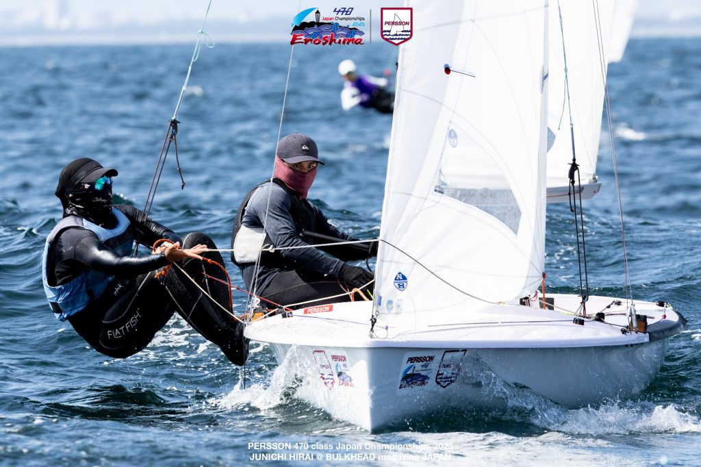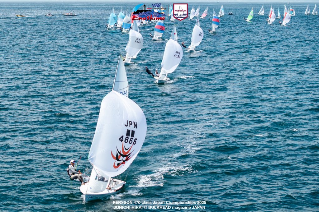9月6日、江の島で開催されている「ピアソンマリン全日本470級ヨット選手権大会2025」4日目。昨日の悪天候が嘘のような快晴で、4ノットの軽風から午後には10ノットまで上がるコンディションとなりました。8時30分からのチームリーダーミーティング後、風が上がるのを待ち10時にD旗が掲揚されました。(レポート/三谷祥子 バルクヘッドマガジン)