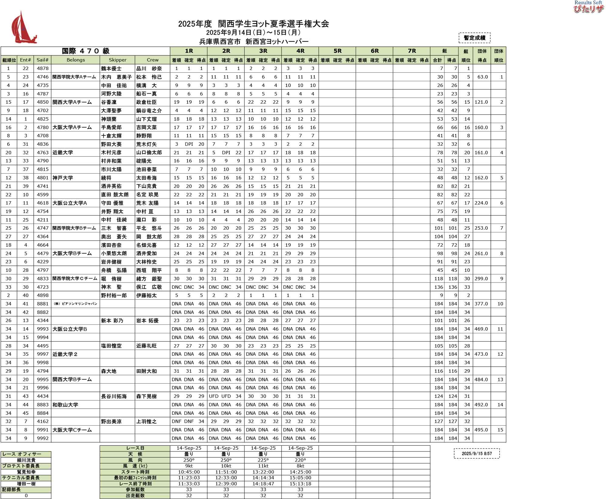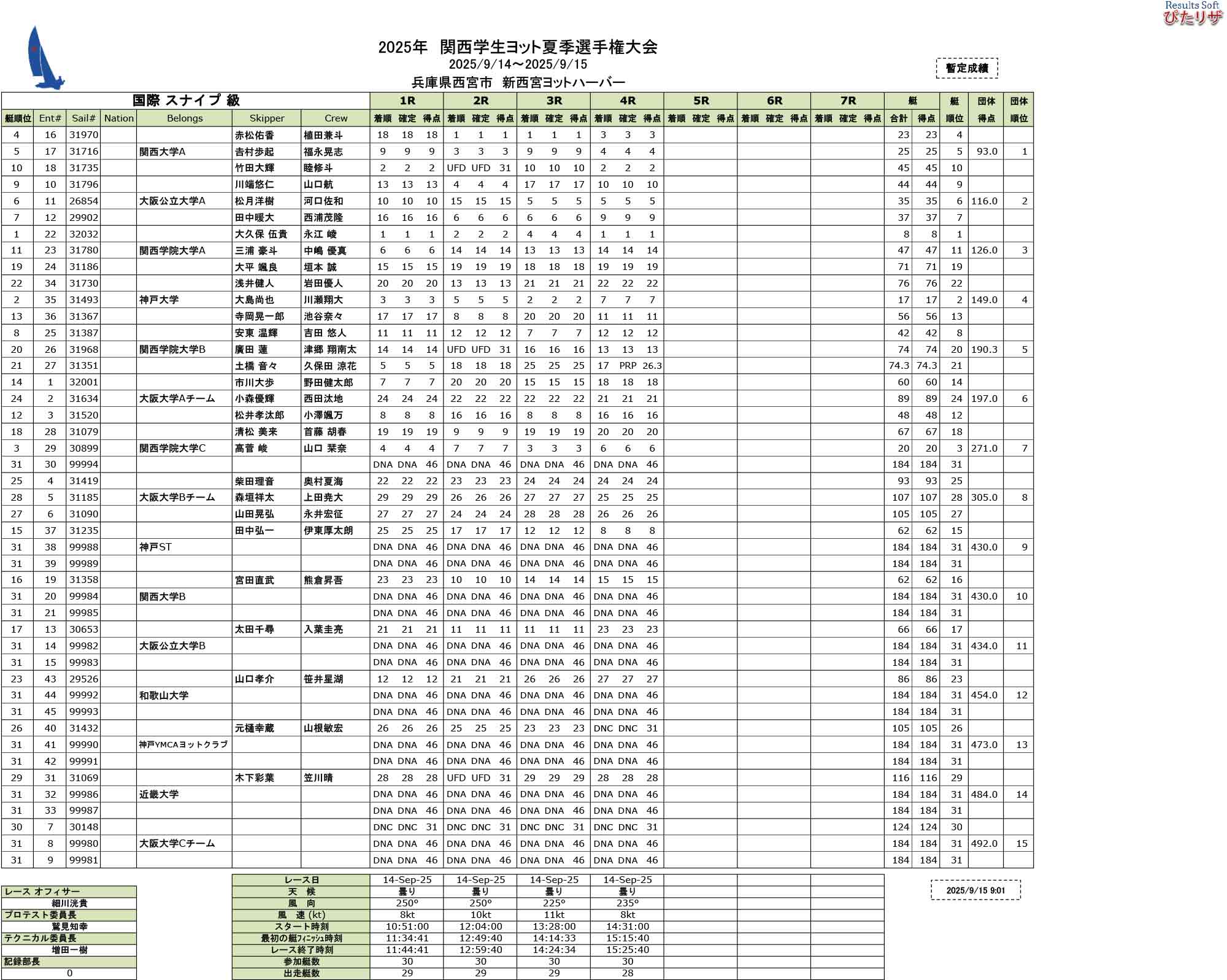 夏の遠征シーズンが終わり、「2025年度関西学生ヨット夏季選手権」が始まりました。全日本インカレ個人戦や夏練習が過ぎ、3週間後に控えた関西インカレ団体戦に向け、各大学の立ち位置が分かる大会です。