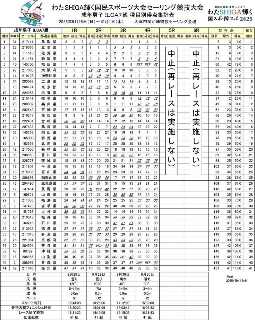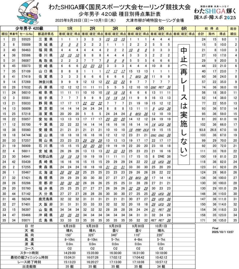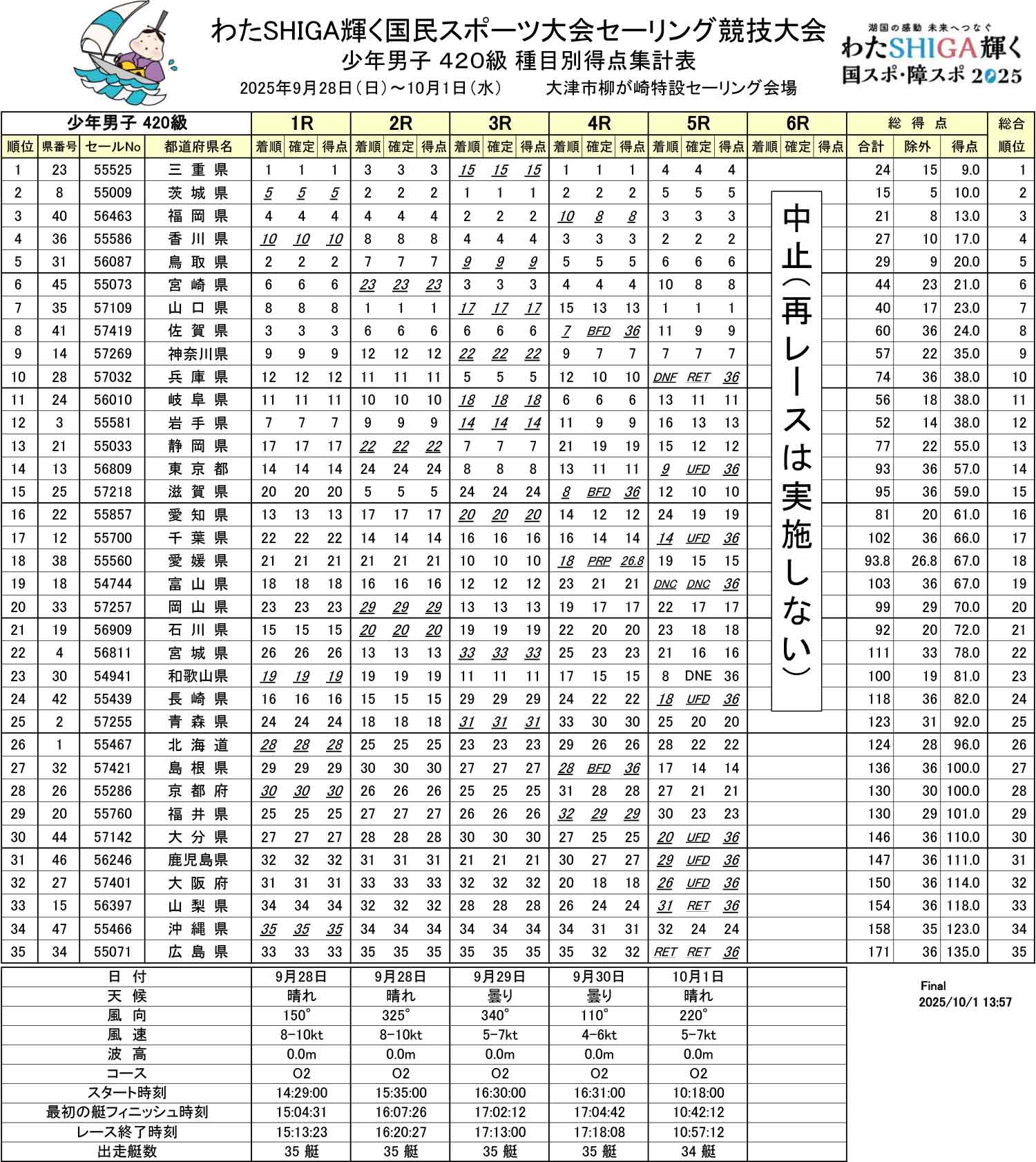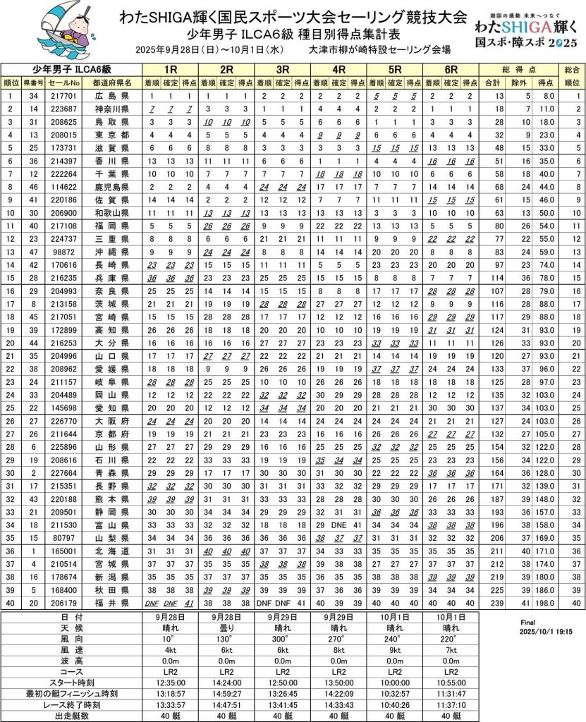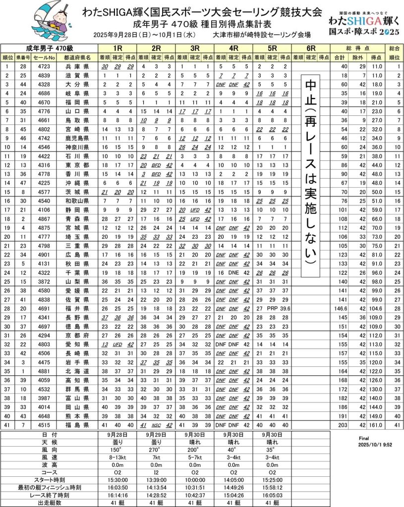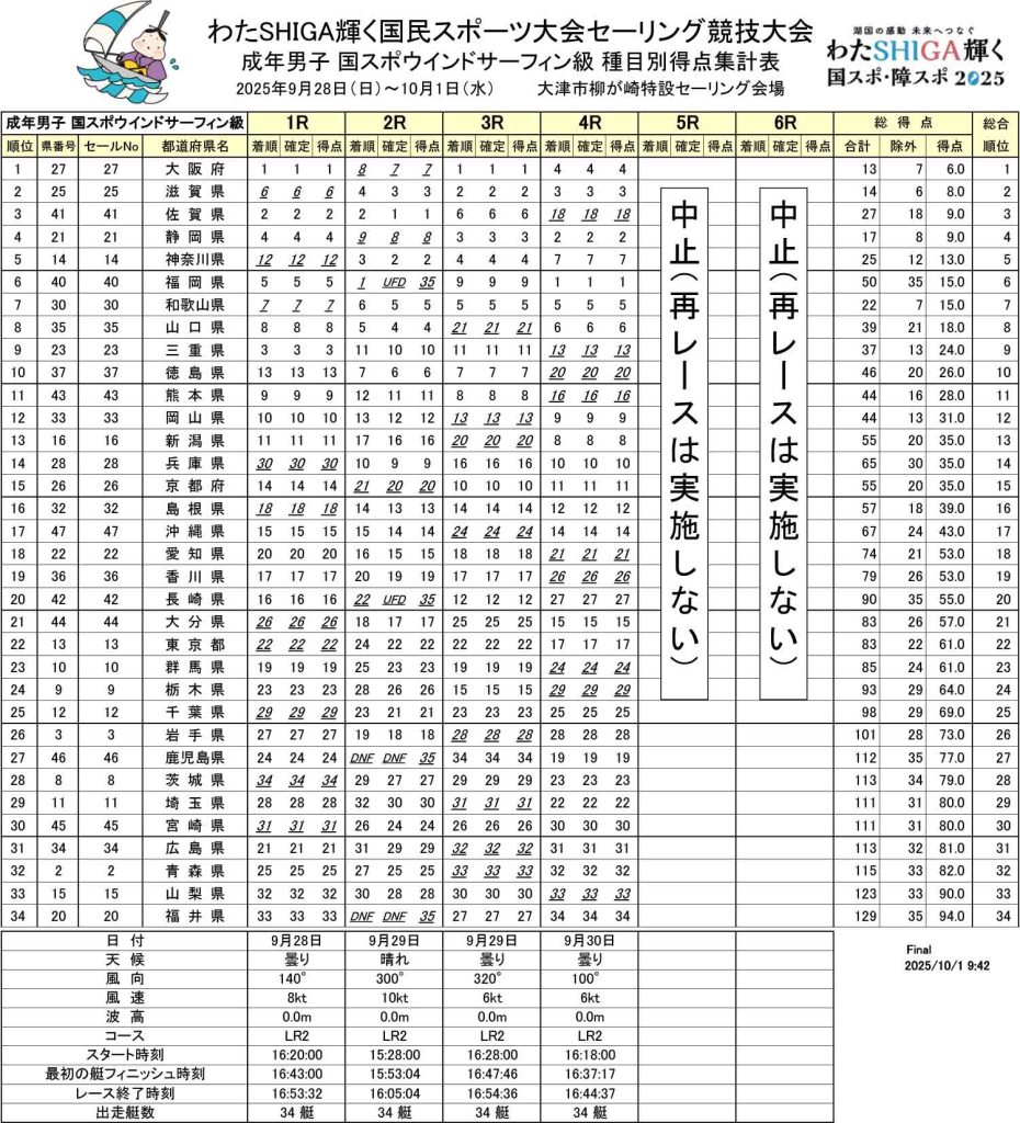 9月28日〜10月1日まで大津市柳が崎特設セーリング会場で開催された「わたSHIGA輝く国スポ 第79回国民スポーツ大会」の成績です。男女総合の天皇杯は鳥取県、女子の皇后杯は佐賀県が獲得しました。(BHM編集部)