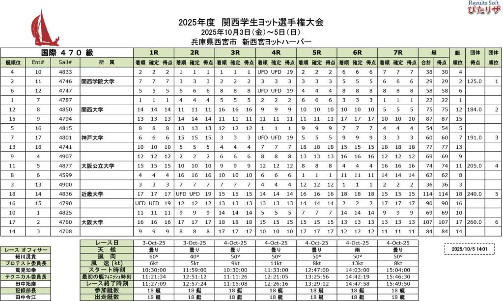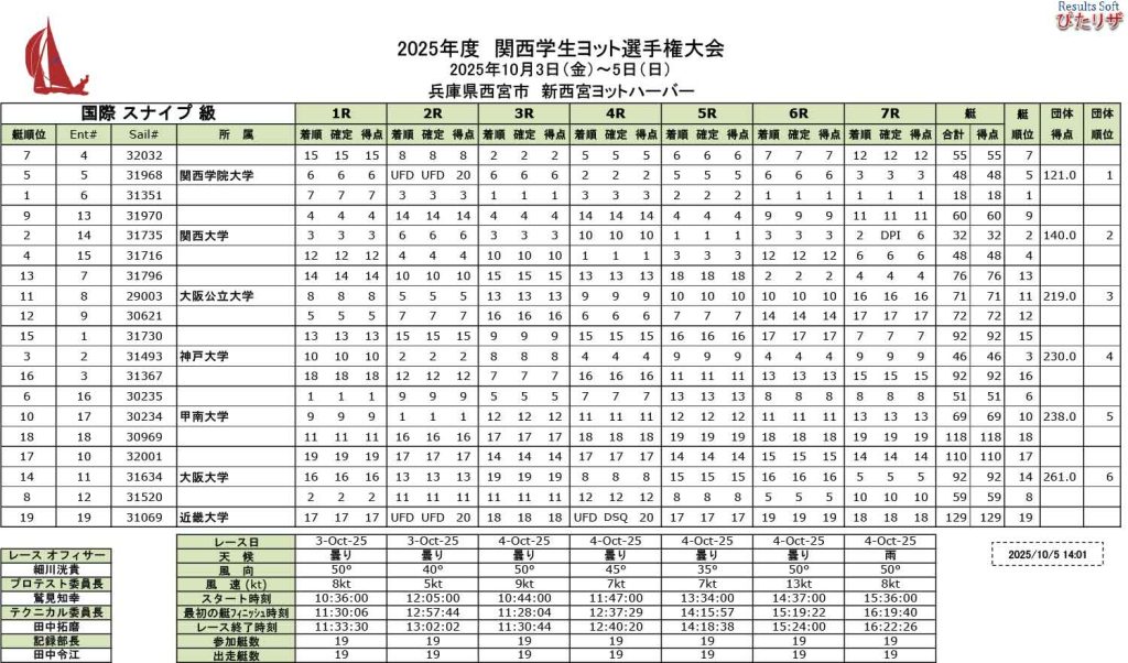 10月5日、兵庫県西宮沖で「2025年度関西学生ヨット選手権」が最終日が行われました。しかし、レースを実施しますが、風がなくなりノーレースに。2日目までに実施した全7レースで、全日本インカレへ進む4校が決まりました。(レポート/藤原葉菜 BHM編集部)