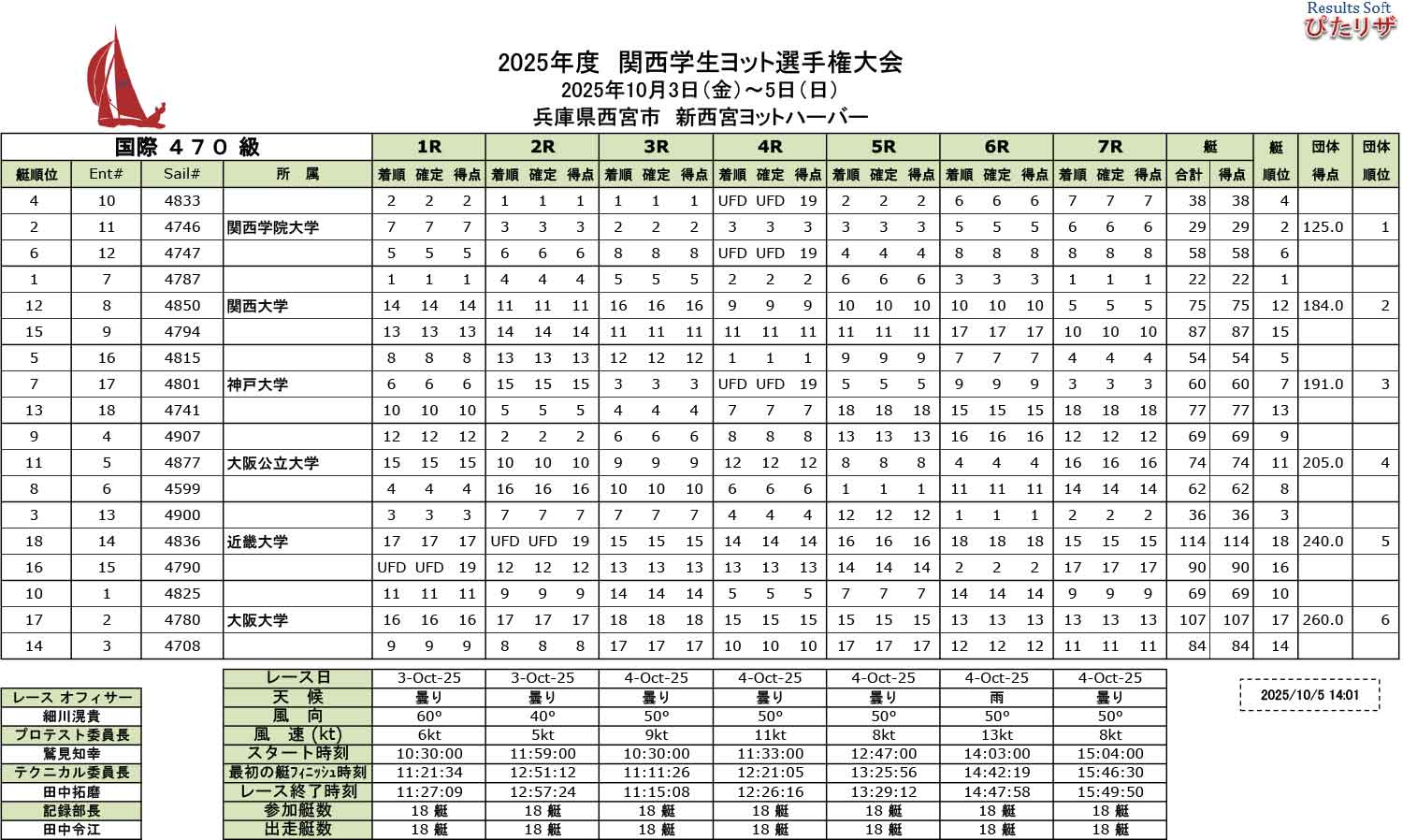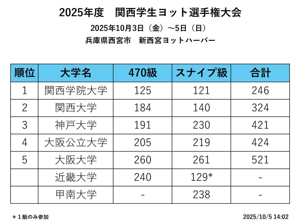 今回、大接戦を制し、予選を通過したのは両クラスともに関西学院大、関西大、神戸大、大阪公立大の4校です。特に神戸大、大阪公立大は悔しい時間を経て、全日本インカレの切符を手にしました。関西水域の大学が江の島の舞台でも躍動してくれることを期待しています。また、予選通過とならなかった大学も、あと一歩という場面が多く見られました。来年の活躍が今から楽しみです。