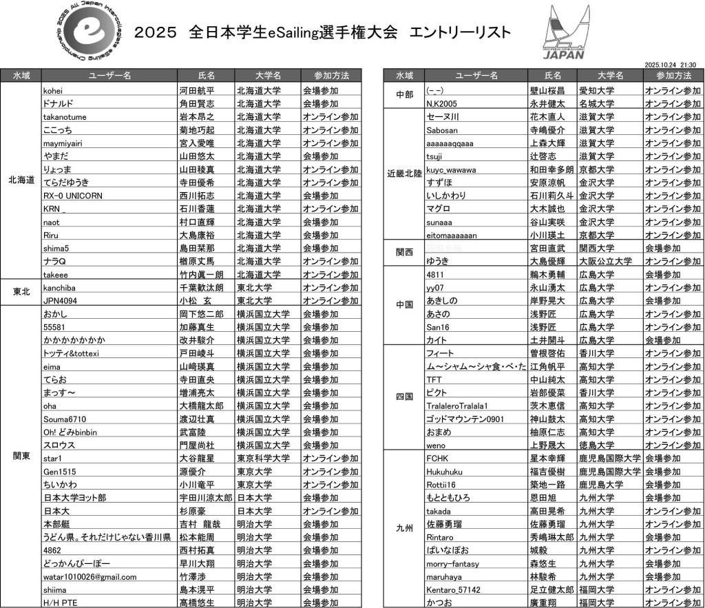注目されたのは、大学単位でeSailingを練習に取り入れている大学です。北海道大(15名)、横浜国立大(11名)、明治大(7名)、九州大(7名)は複数の選手が水域予選を突破し、全日本へ駒を進めました。