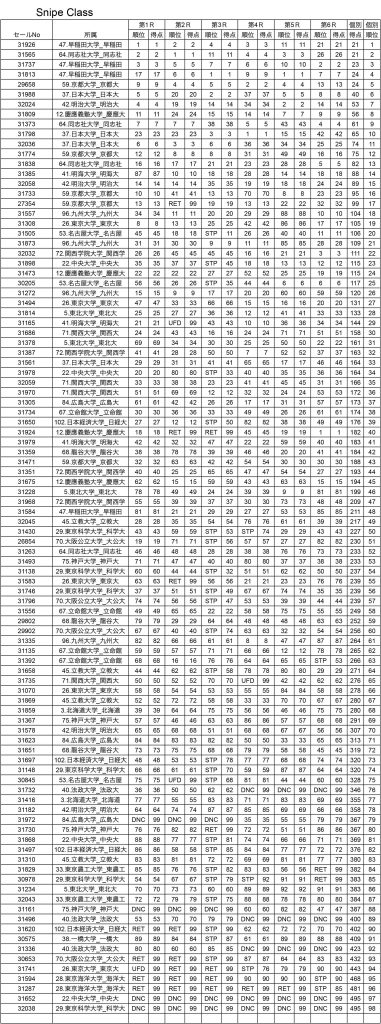 2025年全⽇本インカレプラクティスレース スナイプ級成績