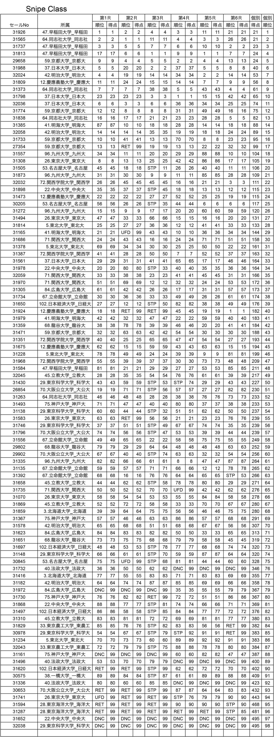 2025年全⽇本インカレプラクティスレース スナイプ級成績