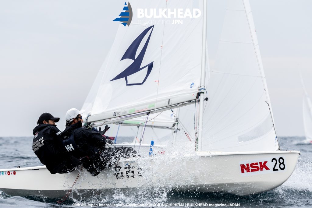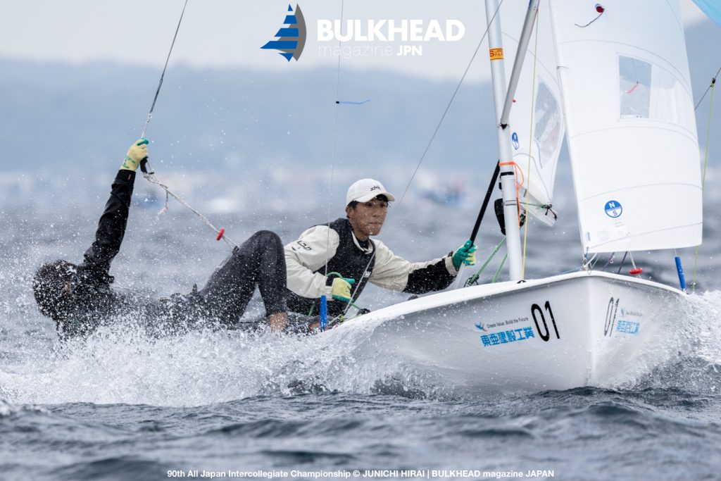 第1レースの470級は早稲田大の重松/松山がトップホーンを鳴らしましたが、残りの2艇が続けず。日本大は初日の3レースで上位成績を連発し、2位以下に大きく差を広げました。