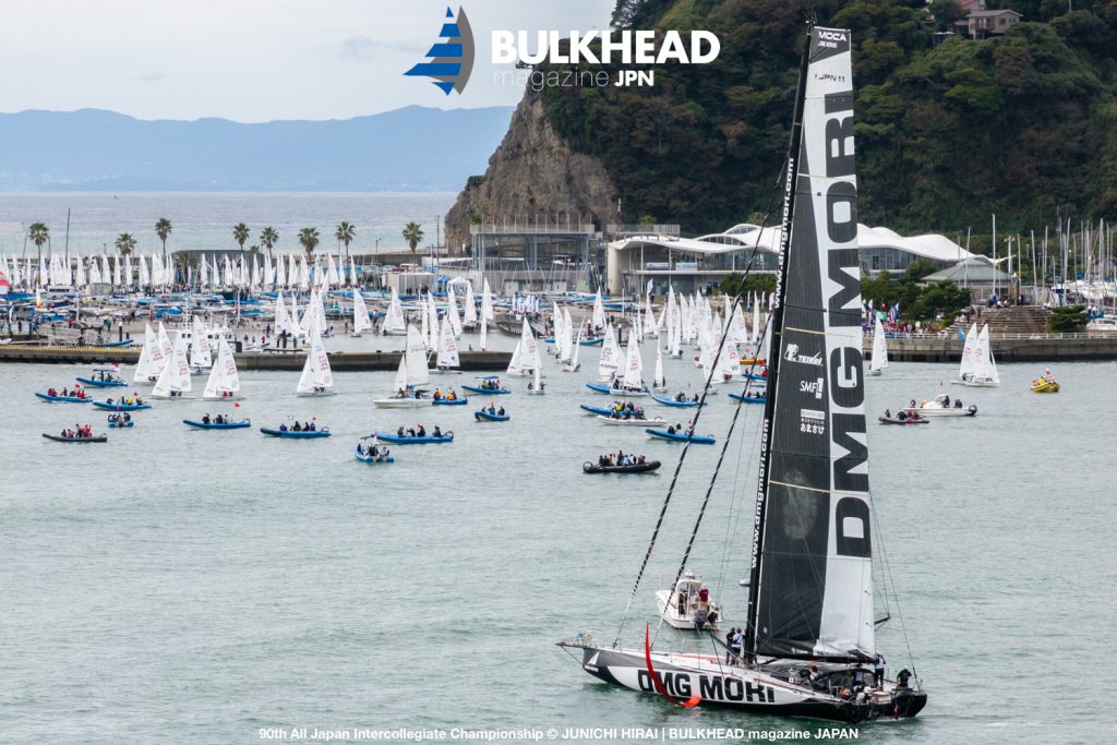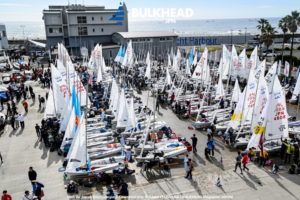 11月1日、江の島ヨットハーバーで「第90回全日本学生ヨット選手権」の2日目です。冷たい雨が降った肌寒い初日と打って変わり、晴れやかな空が広がりました。ただ、風は吹かず陸上待機から始まりました。(レポート/藤原葉菜 BHM編集部)