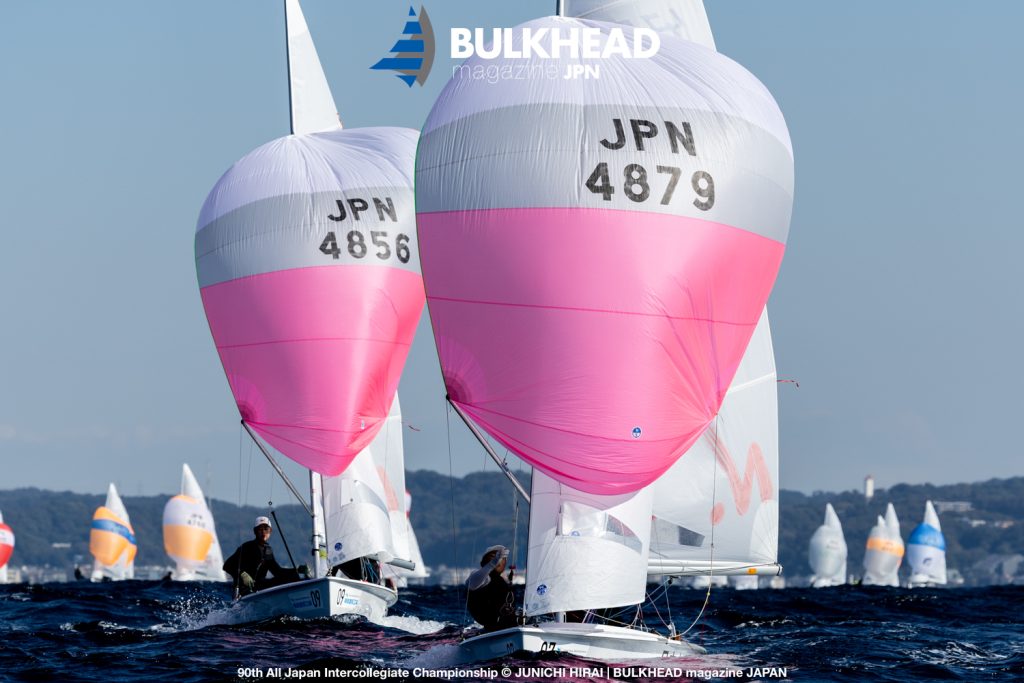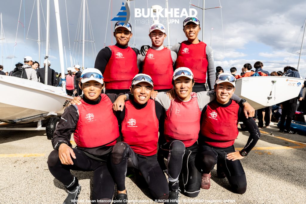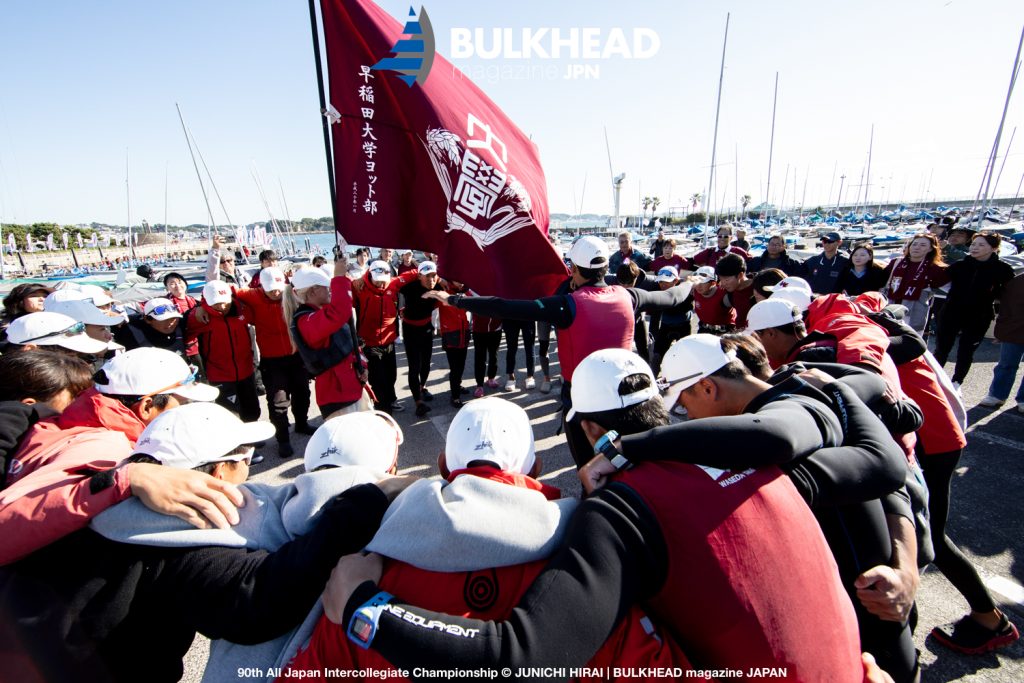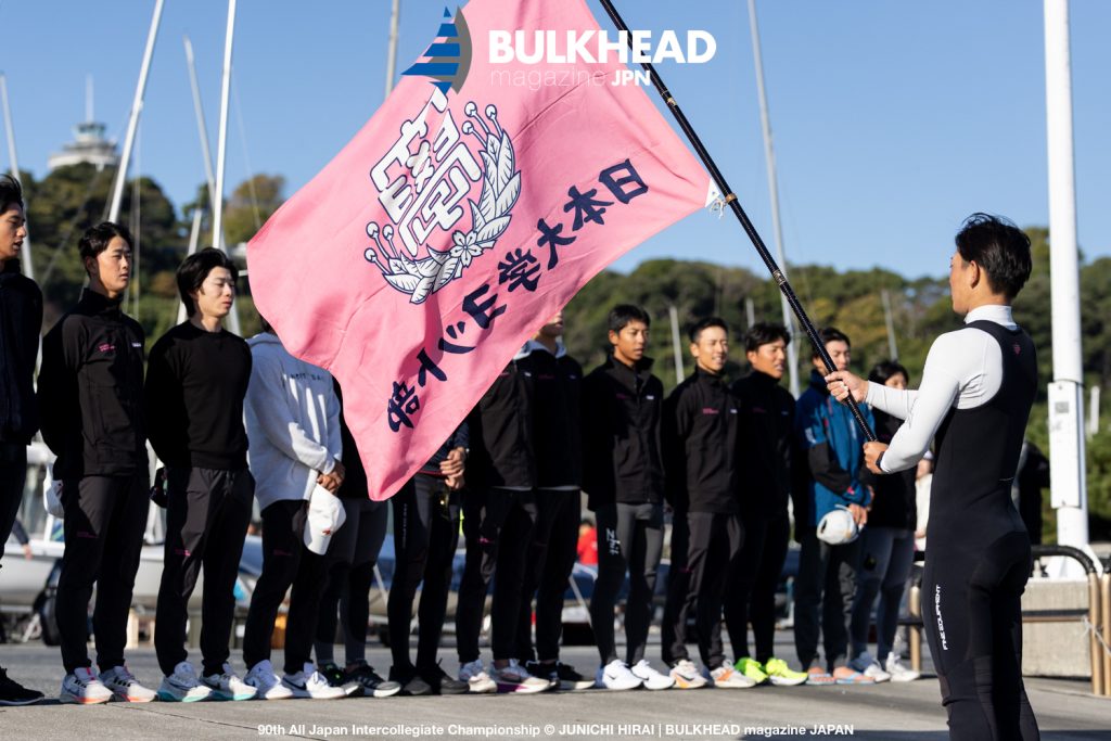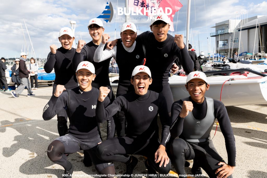 11月3日、江の島ヨットハーバーで「第90回全日本学生ヨット選手権」の最終日を迎えました。3日目を終えた時点で総合首位の早稲田大と2位の日本大の差はわずかに2.3点。勝負の行方は最後まで分からない大接戦になりました。勝負の分かれ目となったのは470級の第8レースです。日本大は3艇合計着順15点と完璧な走りを見せました。このレースが決め手となり、総合優勝を獲得。14年前、日本一の称号を手にした江の島で日本大の時計が再び動き出しました。(レポート/藤原葉菜 BHM編集部)