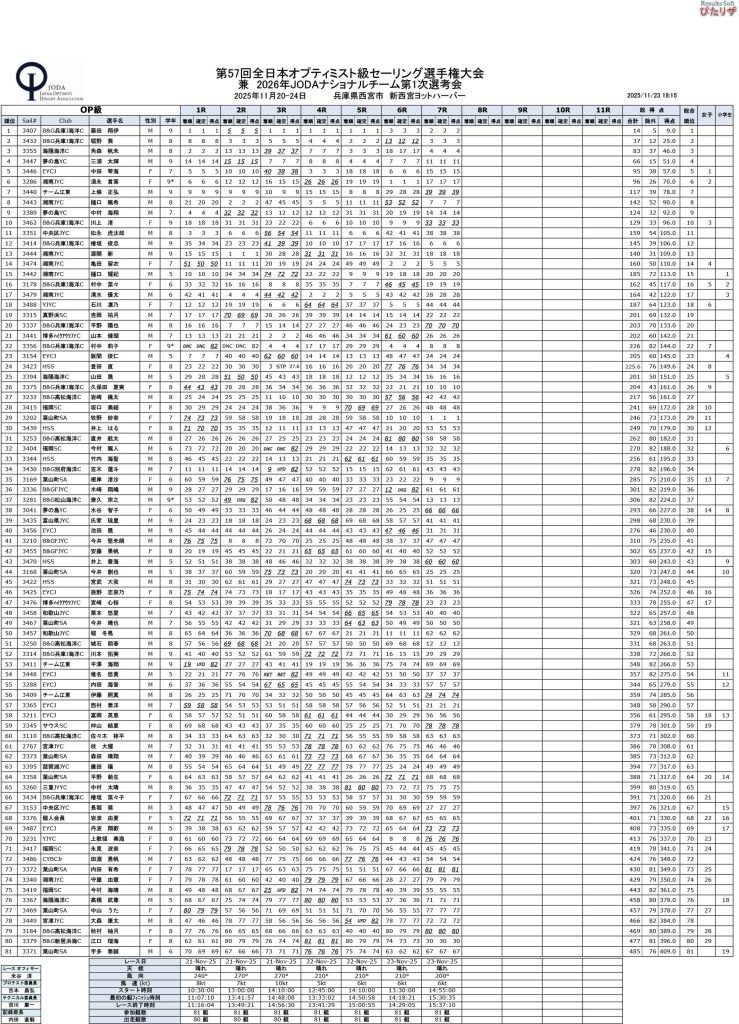 第57 回全日本オプティミスト級セーリング選手権 3日目成績