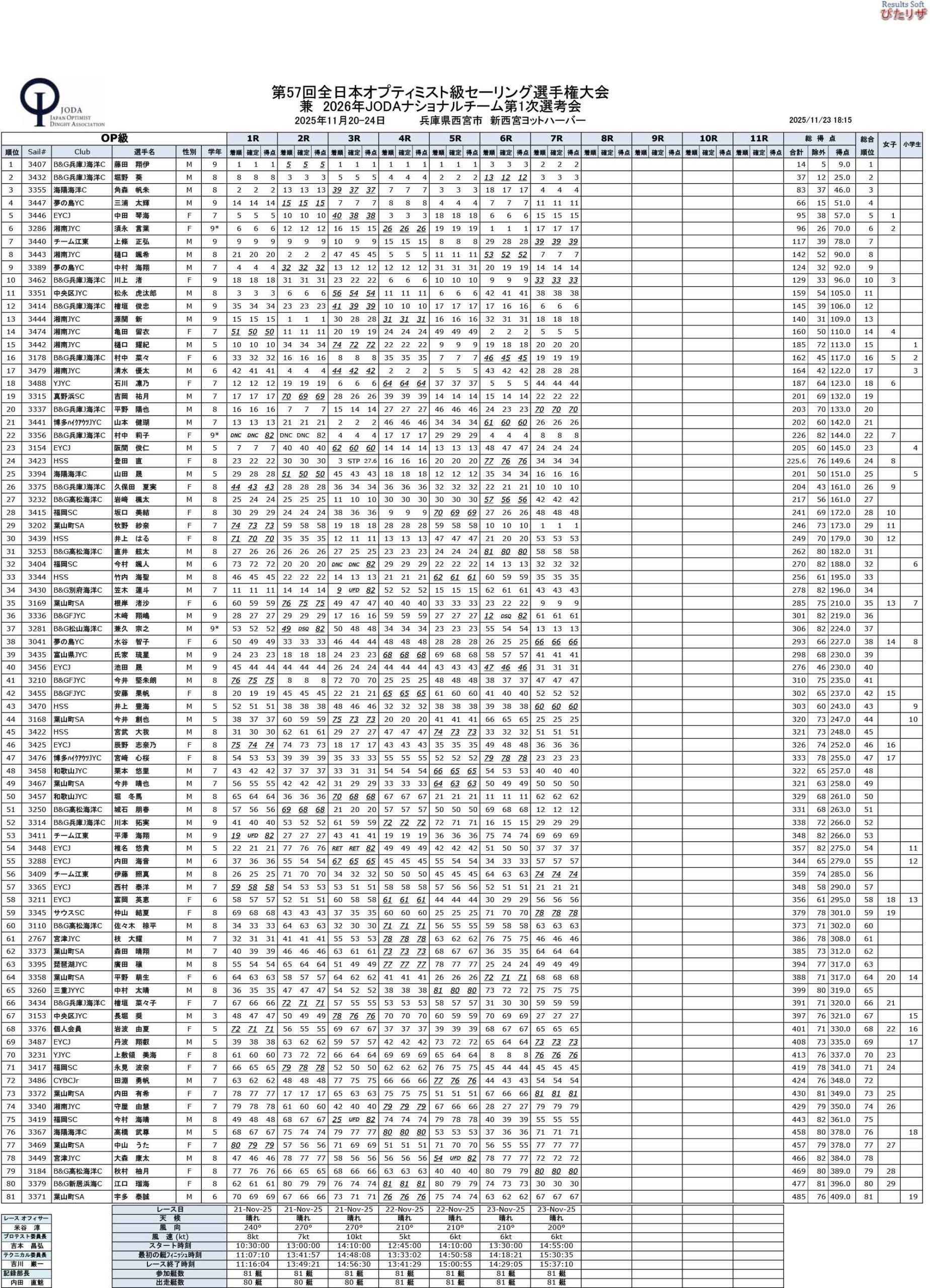 第57 回全日本オプティミスト級セーリング選手権 3日目成績