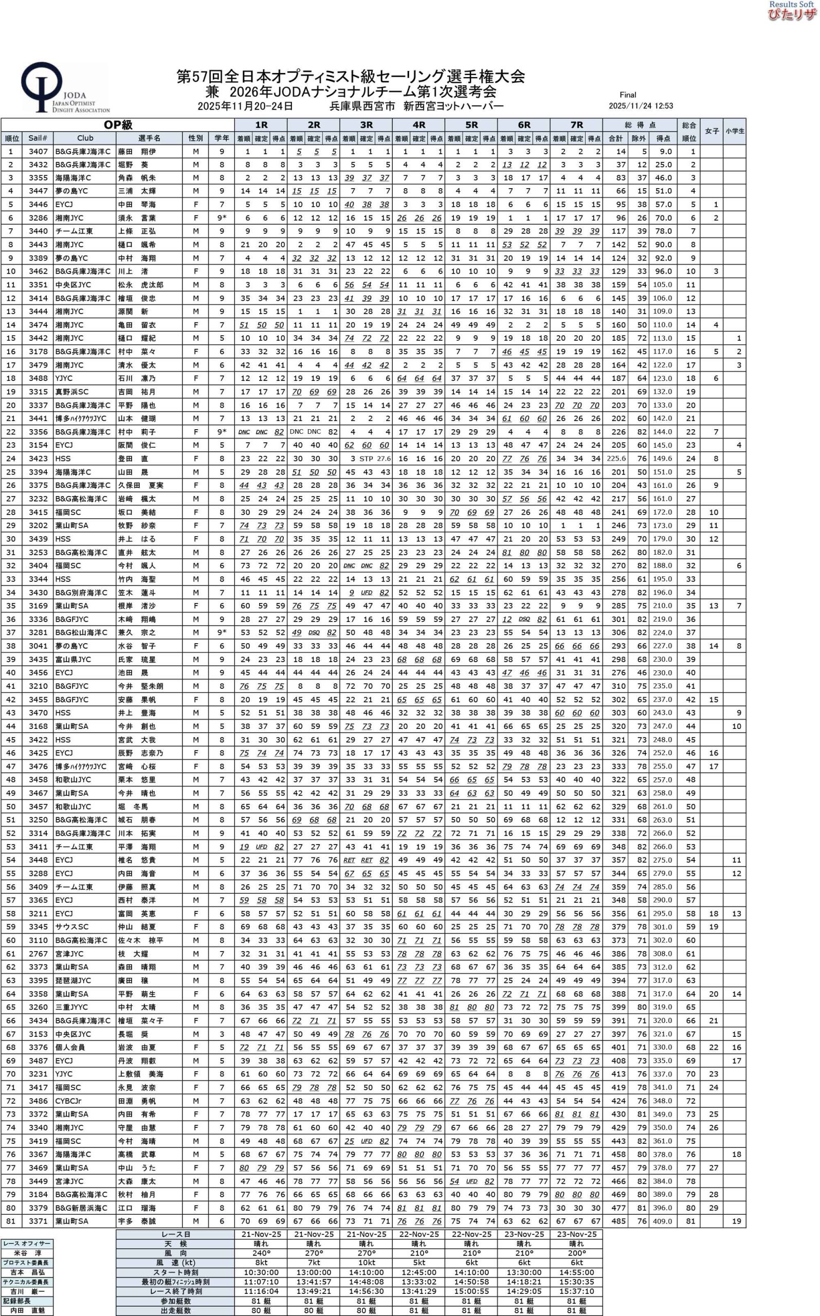 第57回全日本オプティミスト級セーリング選手権 最終成績