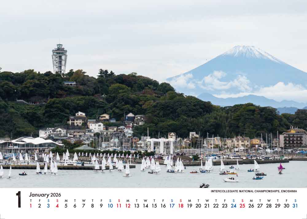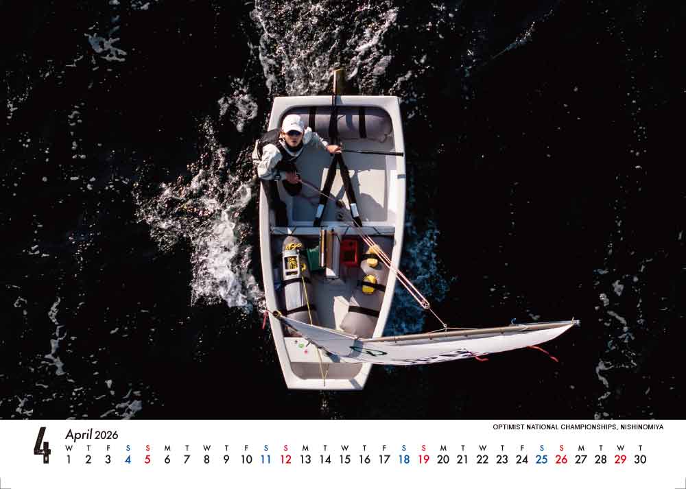 バルクヘッドマガジン・カレンダーを机の上に置いて、この写真かっこいいな。2026年は久しぶりに海に行こうかな。もっと練習して勝ちたいな。来年は新しいセーリングに挑戦してみようかな。なんて思ってもらえたらうれしいです。