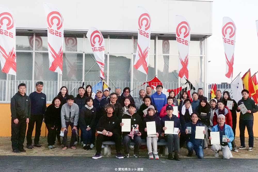 2日目は予報よりも風が上がるのは少し遅かったものの、この時期の蒲郡らしい強風の北風の中、3レースが成立しました。第3、5レースではこの風域での強みを発揮した世界選手権実行委員コンビの伊藤一石/村岸恭明組(江の島)が、第4レースでは地元の利を活かした永井喜彰/谷口洋和/鈴木志寿浦組(愛知県ヨット連盟)がそれぞれトップフィニッシュを飾りました。