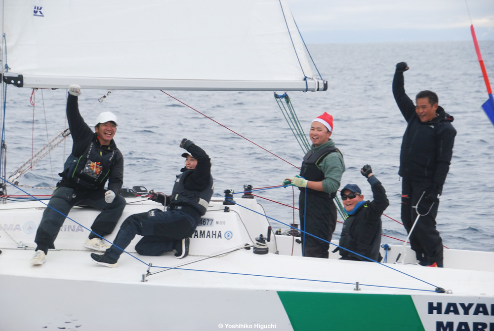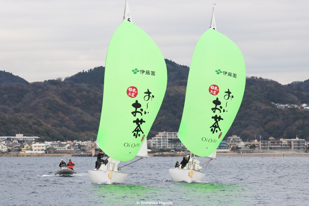 となり、11月に香港マッチレースへの海外遠征を経験した日置スキッパーが、わずかな差でリードを奪う展開となった。