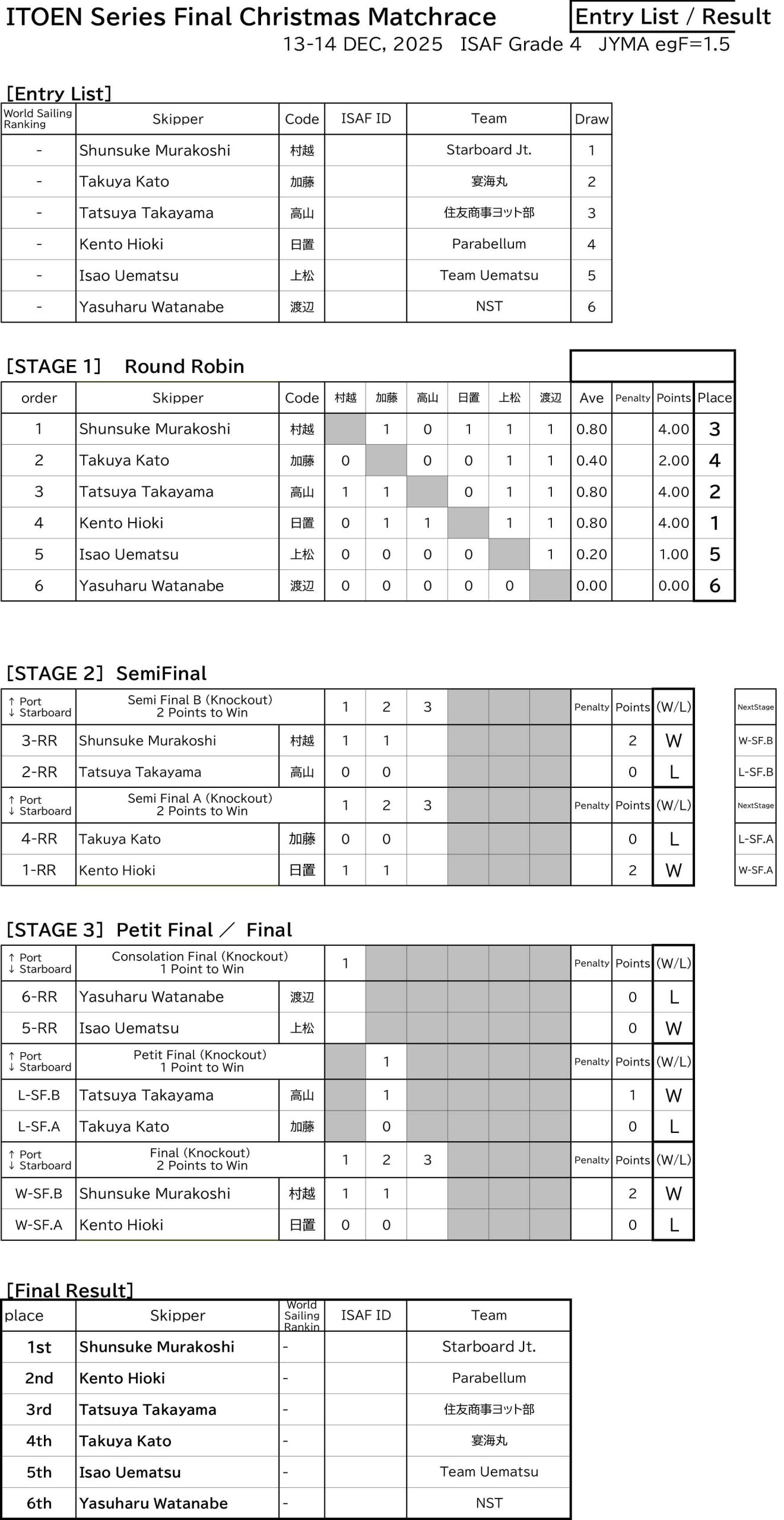 この難しいコンディションの中、巧みなボートハンドリングで艇を完全にコントロールし、高い完成度の戦術で激しいドッグファイトを演じた村越スキッパーが、セミファイナル・ファイナルともに全勝。見事な逆転劇で、シリーズ最終戦を制する優勝を飾った。
