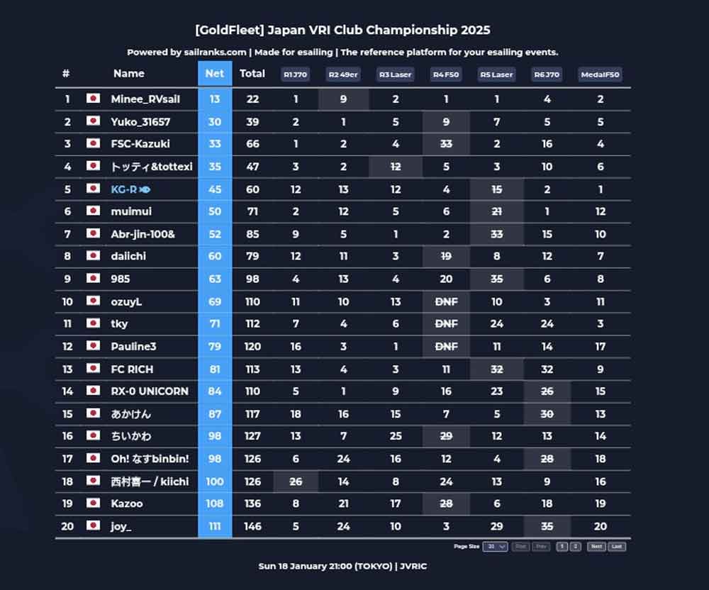 1月18日、オンラインで「第6回 日本VRIクラブチャンピオンシップ 2025」が開催されました。国内最大規模の本大会は日本VRIクラブが主催するクラブレースで、学生、社会人、オリンピックセーラーを含む80人の選手がエントリーして盛大に開催されました。(BHM編集部)