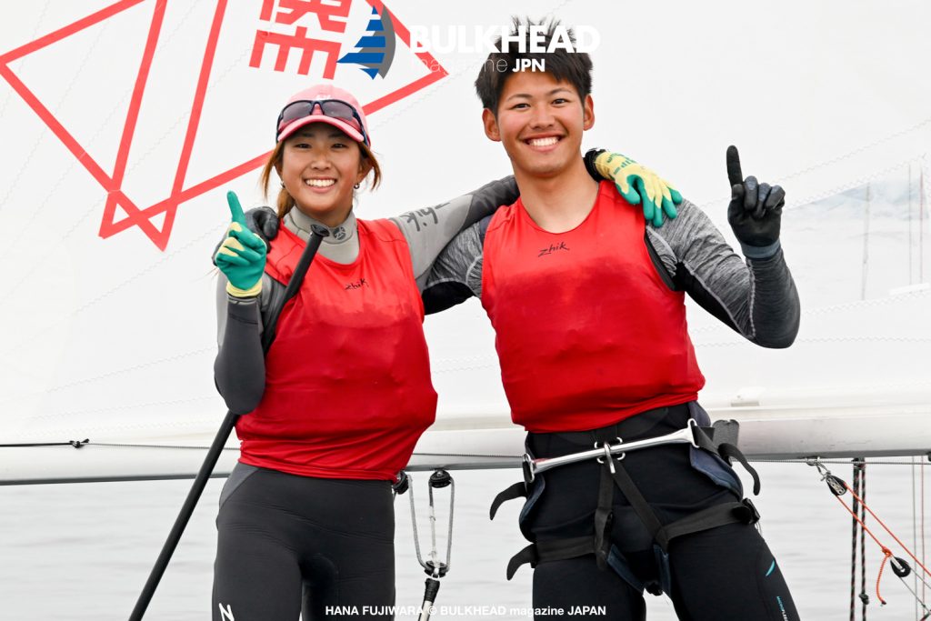 470級の学生優勝(総合2位)は前田月里/木島竜也(広島大)。「今回は風の傾向がつかみづらく、右海面も左海面も使いながら走り、難しかったです。社会人も含め1位を取りたかったので、満足ではありませんが、自分たちが練習してきたことを出せました。全日本インカレ総合入賞に向けて、がんばっていきたいです」(前田月里)